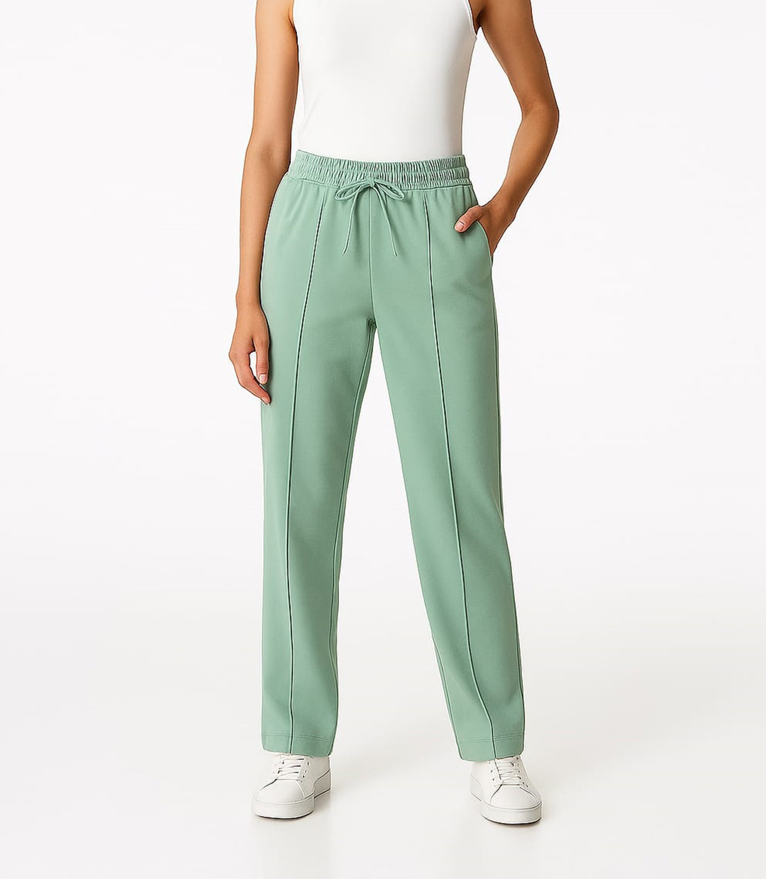 Este pantalón de corte recto en tela burda combina a la perfección estilo y confort. Su confección en tejido licrado ofrece un ajuste favorecedor con la flexibilidad ideal para el día a día. Con una caída elegante y una silueta atemporal, es una prenda versátil que se adapta a múltiples ocasiones. Disponible en una amplia gama de colores.